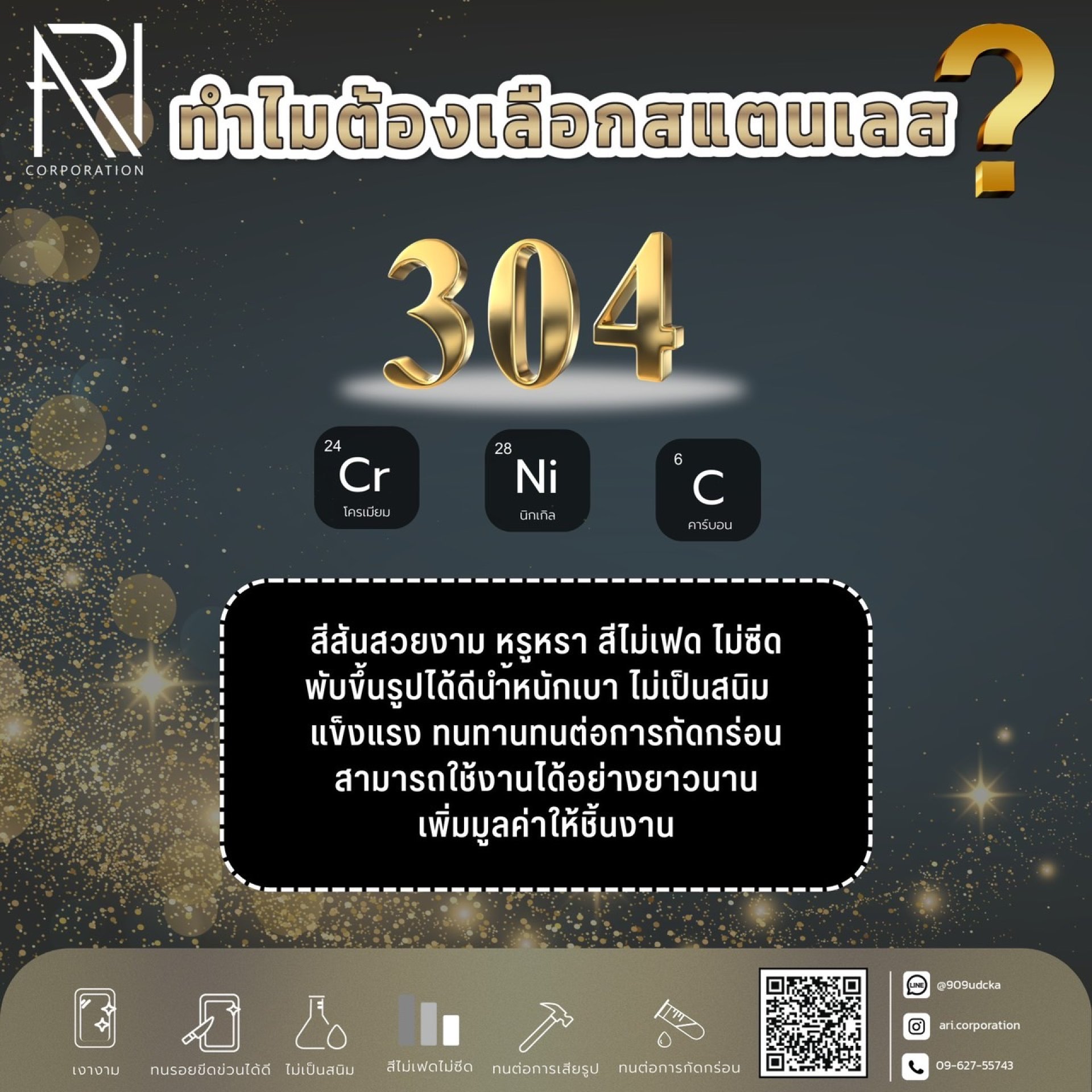 อย่างที่ทุกคนทราบดีว่าสแตนเลสนั้นมีหลายชนิด ทั้งสแตนเลส201 และ สแตนเลส304 (>อ่านเรื่องความแตกต่างของสแตนเลส201กับ304ได้ที่นี่<) ซึ่งวันนี้ อาริสแตนเลส จะขอเจาะจงเข้าไปที่สแตนเลส304 ซึ่งเป็นสินค้าตัวเอกของเรานั่นเอง "สแตนเลส304นั้นมีดีอย่างไร ทำไมลูกค้าส่วนใหญ่จึงเลือกใช้สแตนเลส304ในงานของตัวเอง"